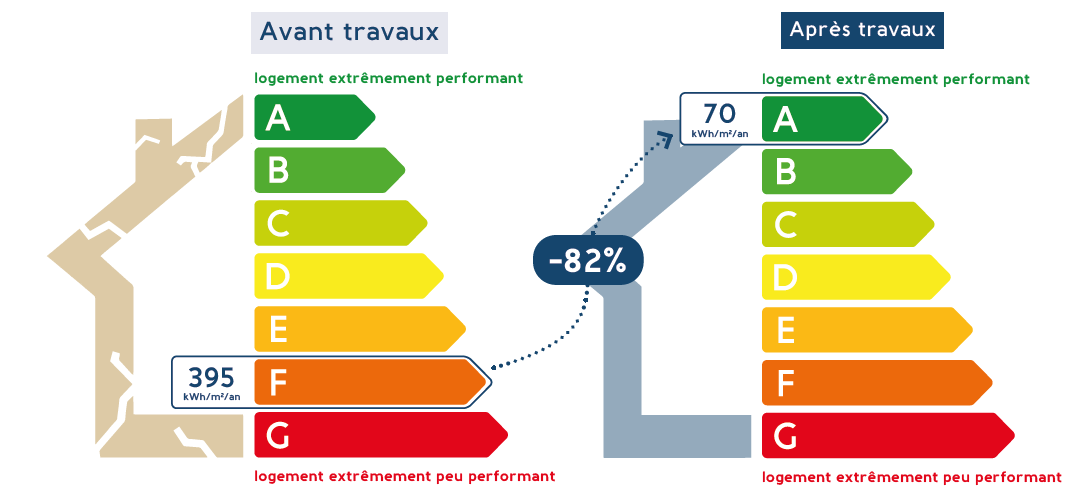 Ces données extra financières sont propres à l’opération présentée. Chaque opération a son propre niveau d’amélioration énergétique qui ne correspond pas nécessairement aux niveaux indiqués pour ces logements.