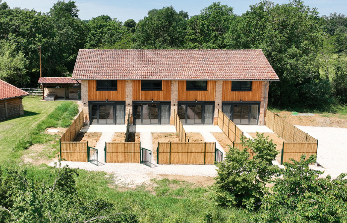 Kyaneos a réhabilité cette grange en 4 duplex de 80 m² qui bénéficient chacun d’un jardin privatif et d’une place de stationnement.